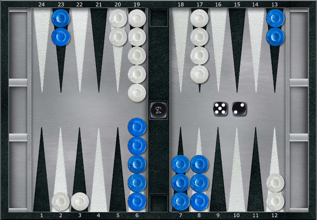Breaking the midpoint is so detrimental that we should even strive to avoid plays that might result in breaking it eventually. Consider the position below, which is identical to the one above, except we moved one spare checker from the 8-pt back to the 13-pt. 1